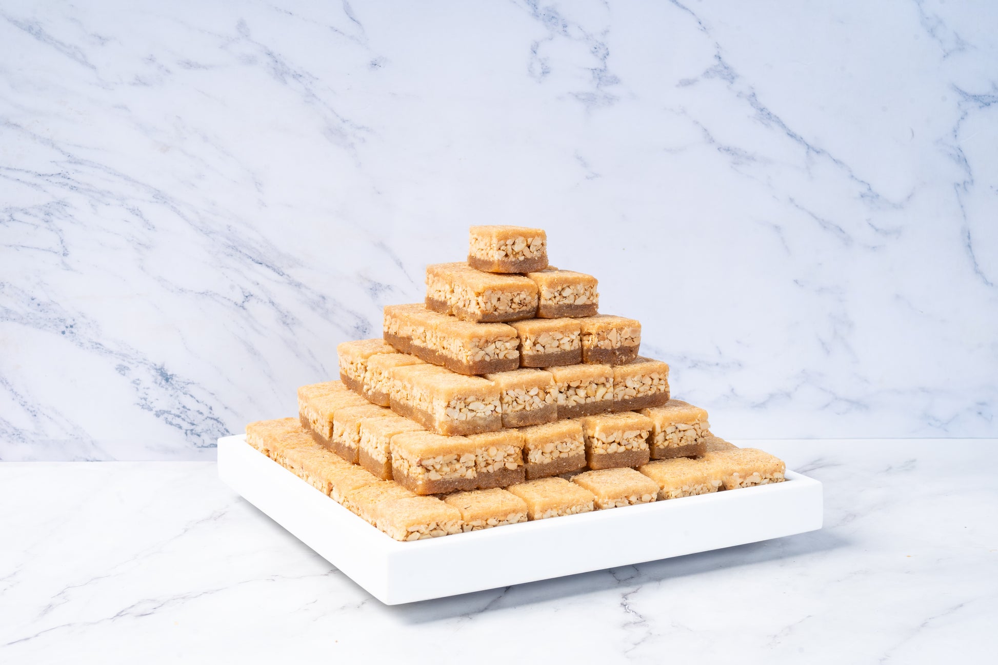 Kunafa Square is a carefully crafted, kunafa-inspired sweet that blends traditional pastry texture with a wholesome nut-rich centre. Made using fine wheat-based kunafa dough layered on the top and bottom with almond paste, this dessert offers the familiar crispness of classic kunafa with a cleaner, more balanced ingredient profile.